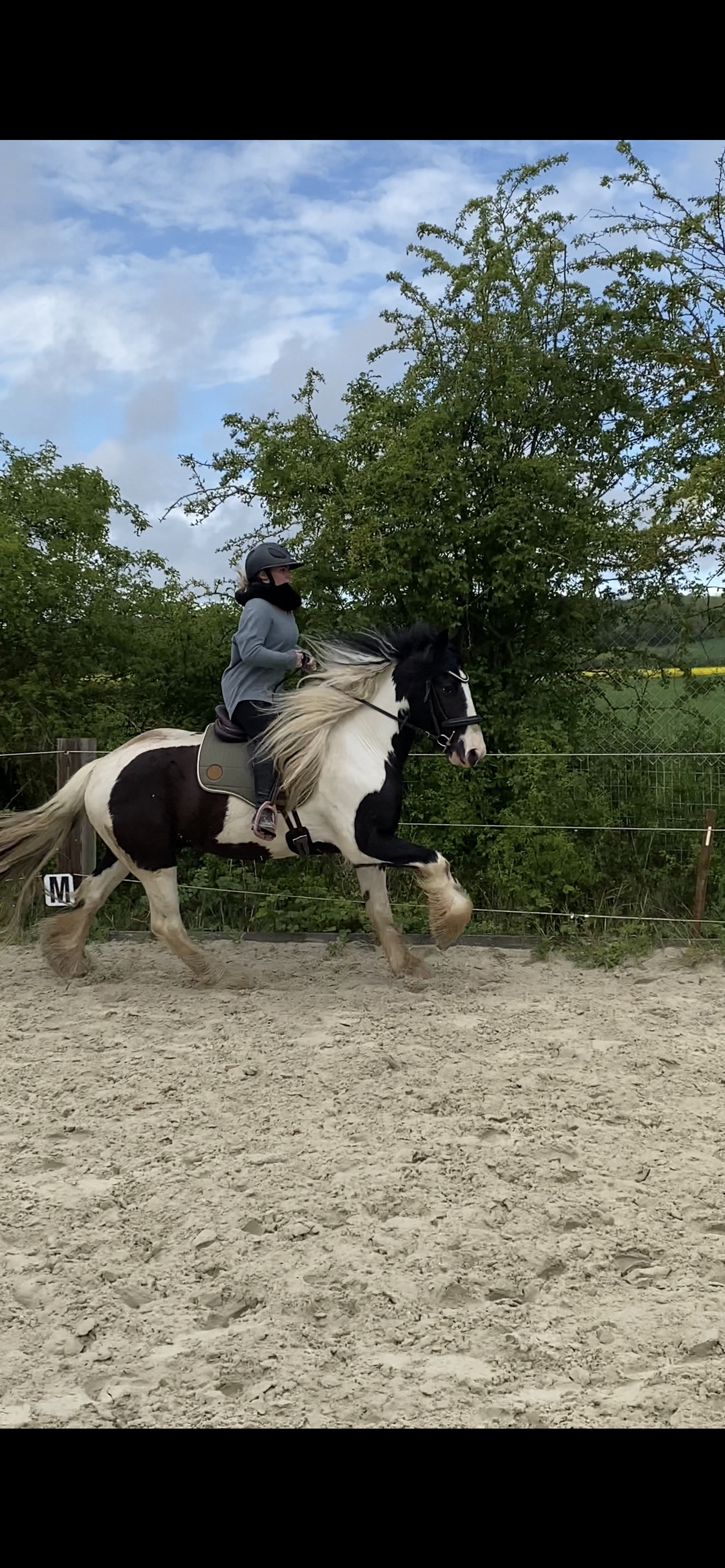 Après 3 années compliquées avec mouss je l’ai laissé 3 années en pature car ce ne se passait pas bien à cheval (peur du cavalier ++ stress ++ anxieux ++). J’ai confié mon cheval à Louise et Cristian sans grande conviction puisque pour moi, c’était peine perdue … et miracle !!! Maintenant, mon cheval ne bouge plus au montoir, sait se montrer très patient lors des arrêts (chose qui était impossible avant), ne tire plus au renard, marche, trotte et galope calmement. À nous les balades 🐴☀️ Merci à Louise et Cristian pour le travail fait sur mon cheval, leur écoute et leur gentillesse envers les chevaux 🥰 Lucie & Mouss